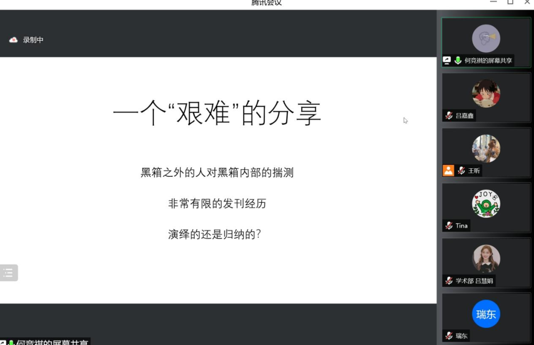 何竞祺围绕自身写作投稿的经历进行分享。首先,他提出发现选题的两种灵感来源:一是源于生活,与生活对话;二是源于日常学术积累,与研究者对话。其次,在文献搜集方面建议大家做好文献综述,选择具有价值的文献进行研究。最后谈到投稿前需注重文章内容与期刊调性的匹配性,做好审稿周期较长的准备,以平常心对待录用结果。