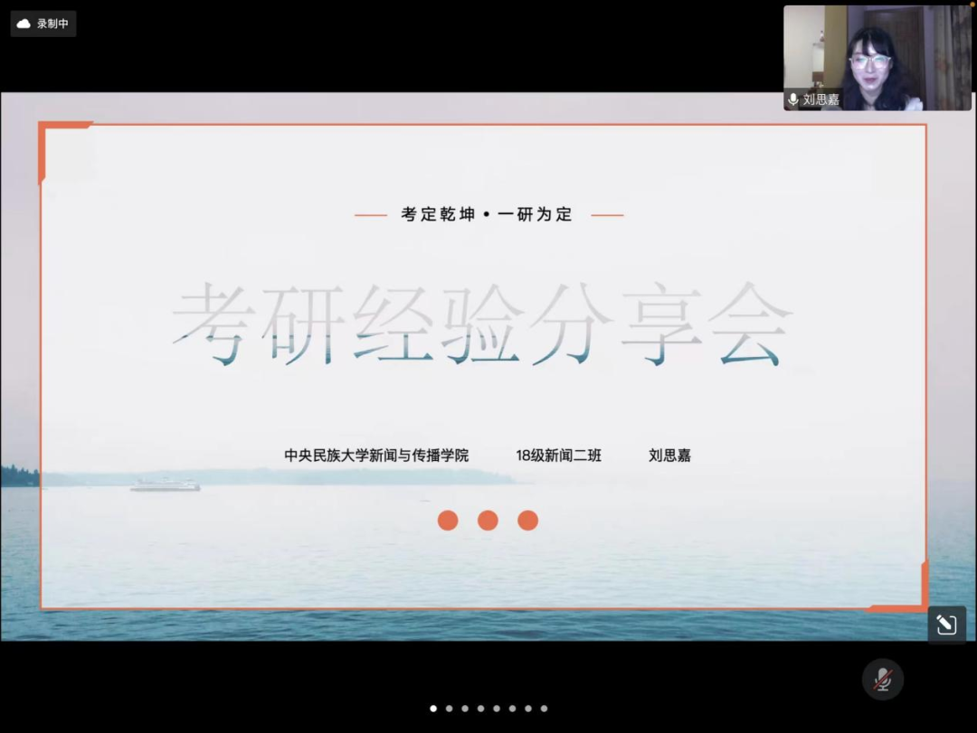 5月19日晚,william威廉中文官网2022年“考定乾坤,一研为定”考研经验分享会通过线上腾讯会议举办,新闻系汪露老师、广告系杨超老师参加了本次分享会。活动邀请到三位成功上岸的学长学姐分享他们的奋斗经历和学习心得,为同学们答疑解惑。