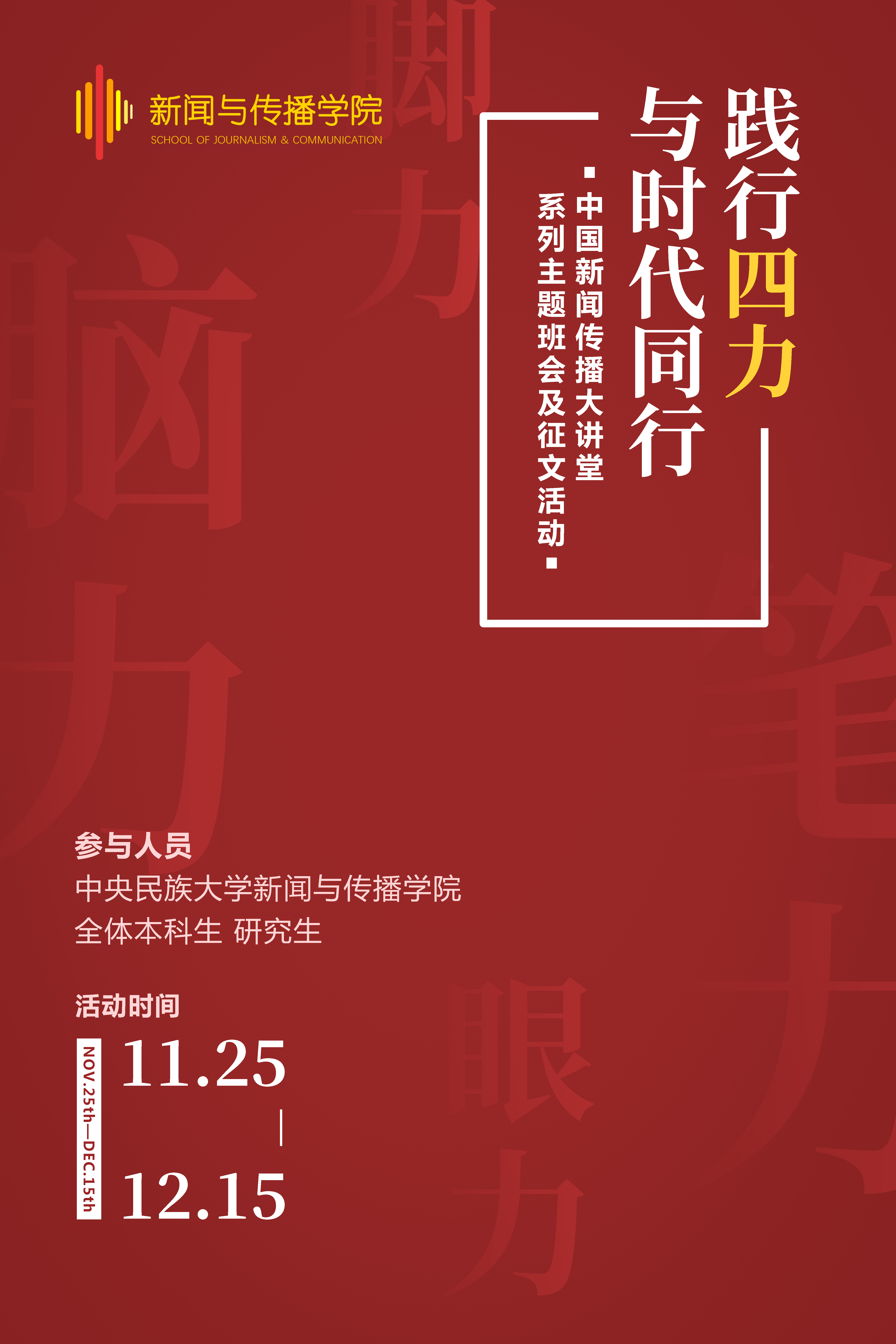 william威廉中文官网号召各个班级积极举办以“践行四力,与时代同行”为主题的班会,以32集视频为素材开展学习并征集心得体会,让同学们更好地认识中国国情、树立新闻理想、提升专业能力。