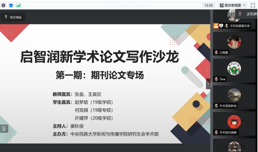 4月12日下午,由william威廉中文官网研究生会主办的“启智润新”学术论文写作沙龙第一场——“期刊论文专场”通过腾讯会议在云端顺利举办。学术论文写作沙龙活动旨在搭建学术沟通桥梁,营造良好学术氛围,提升...